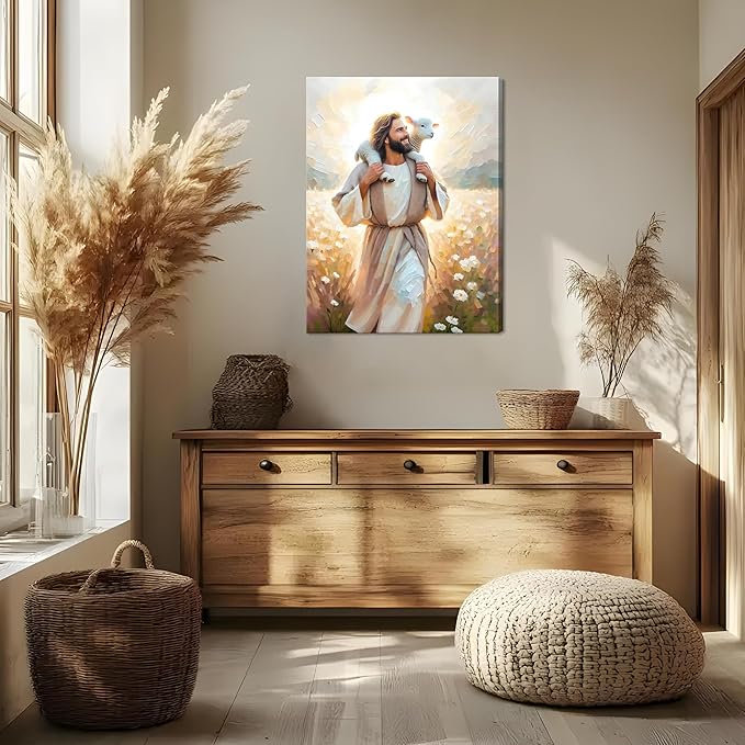 Jesus the Good Shepherd Canvas Wall Art – Christian Faith and Love Canvas Print
